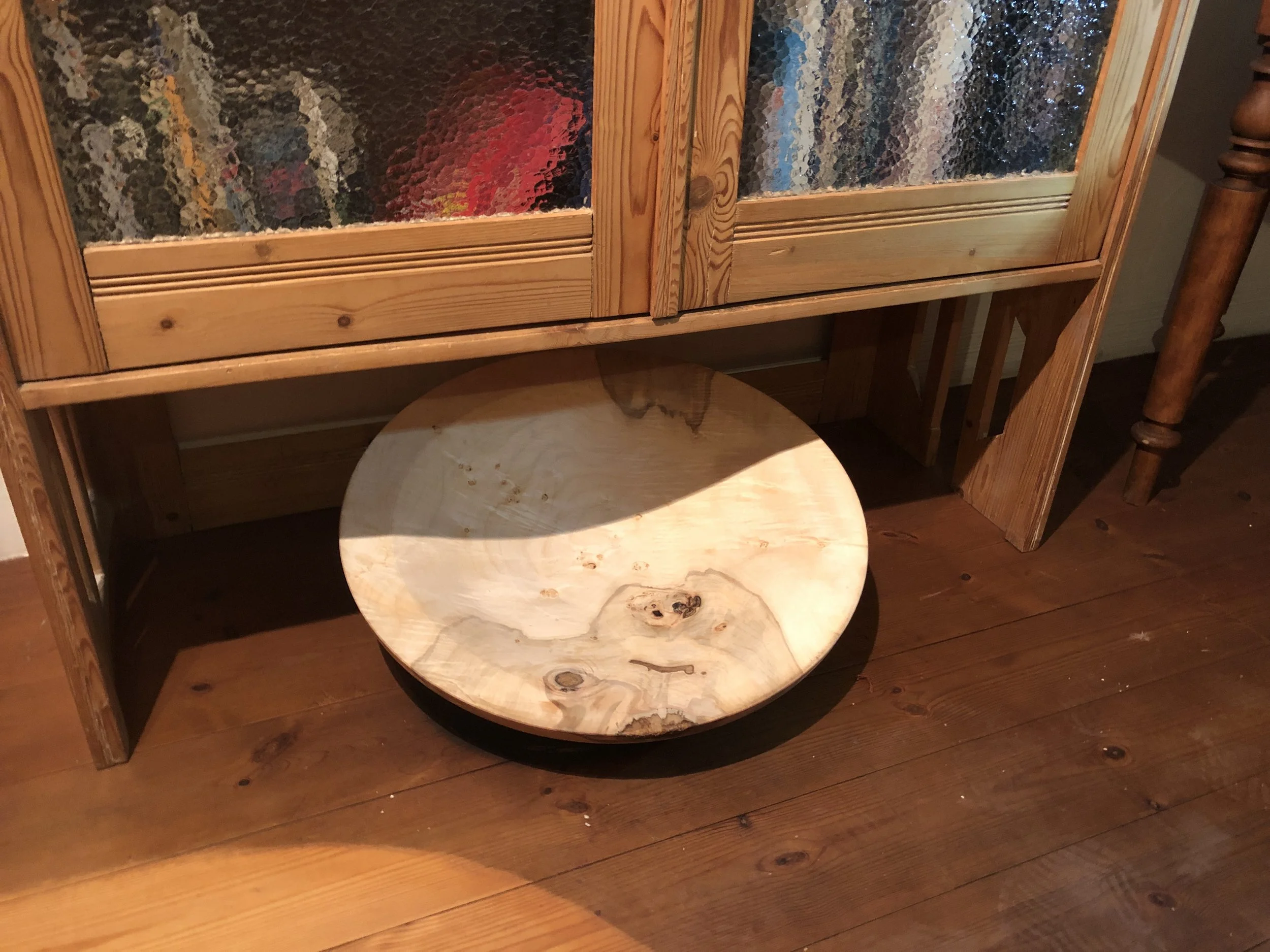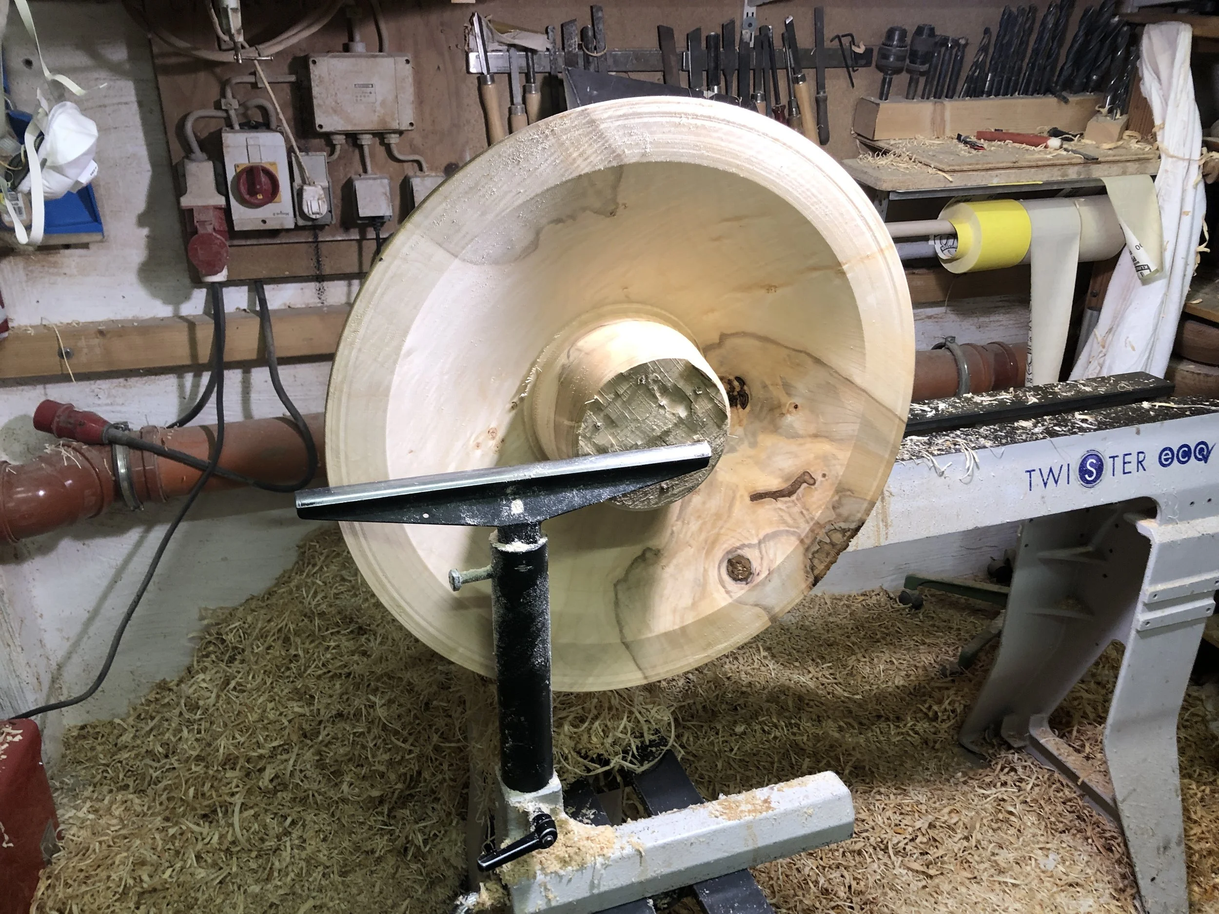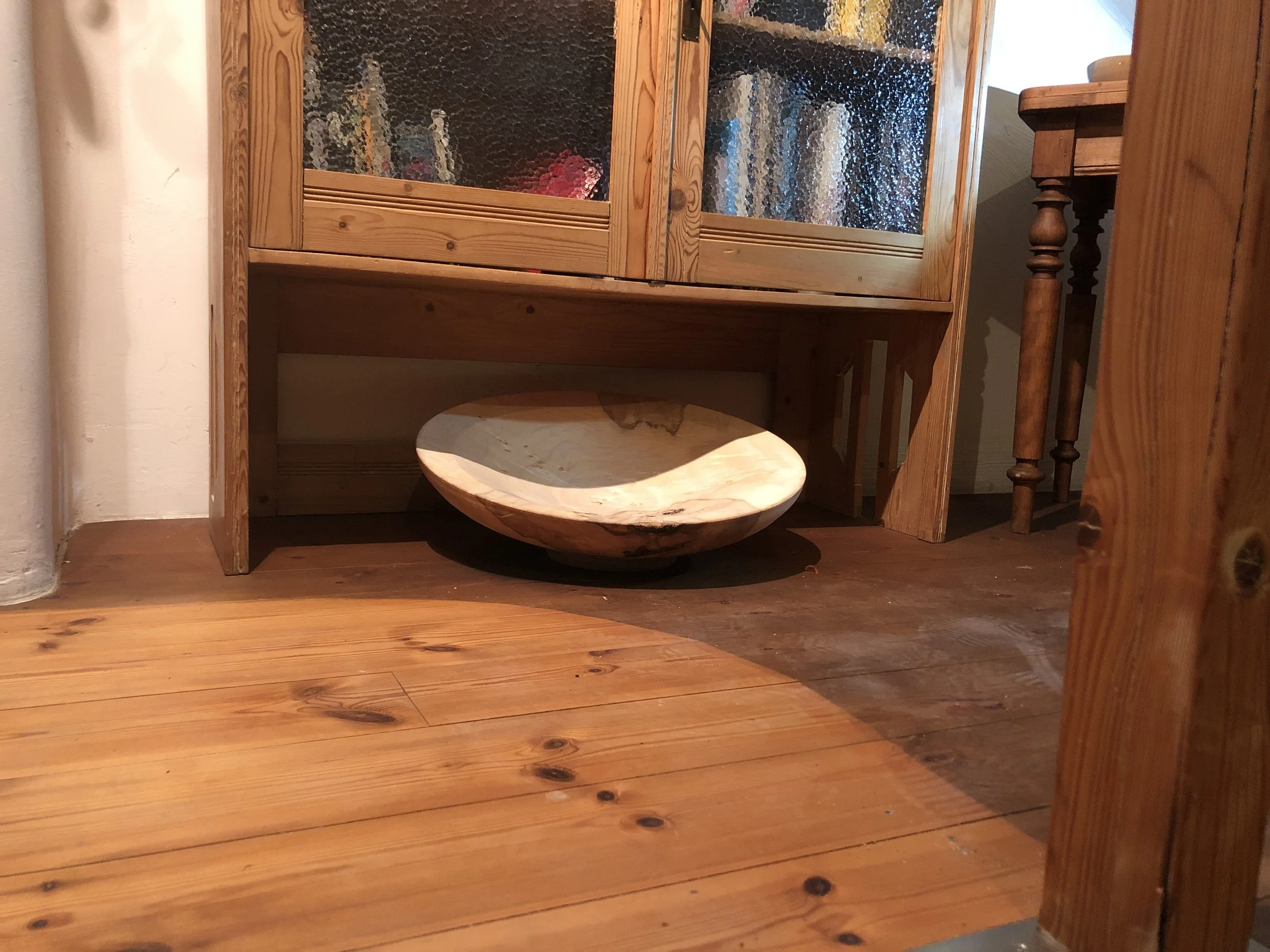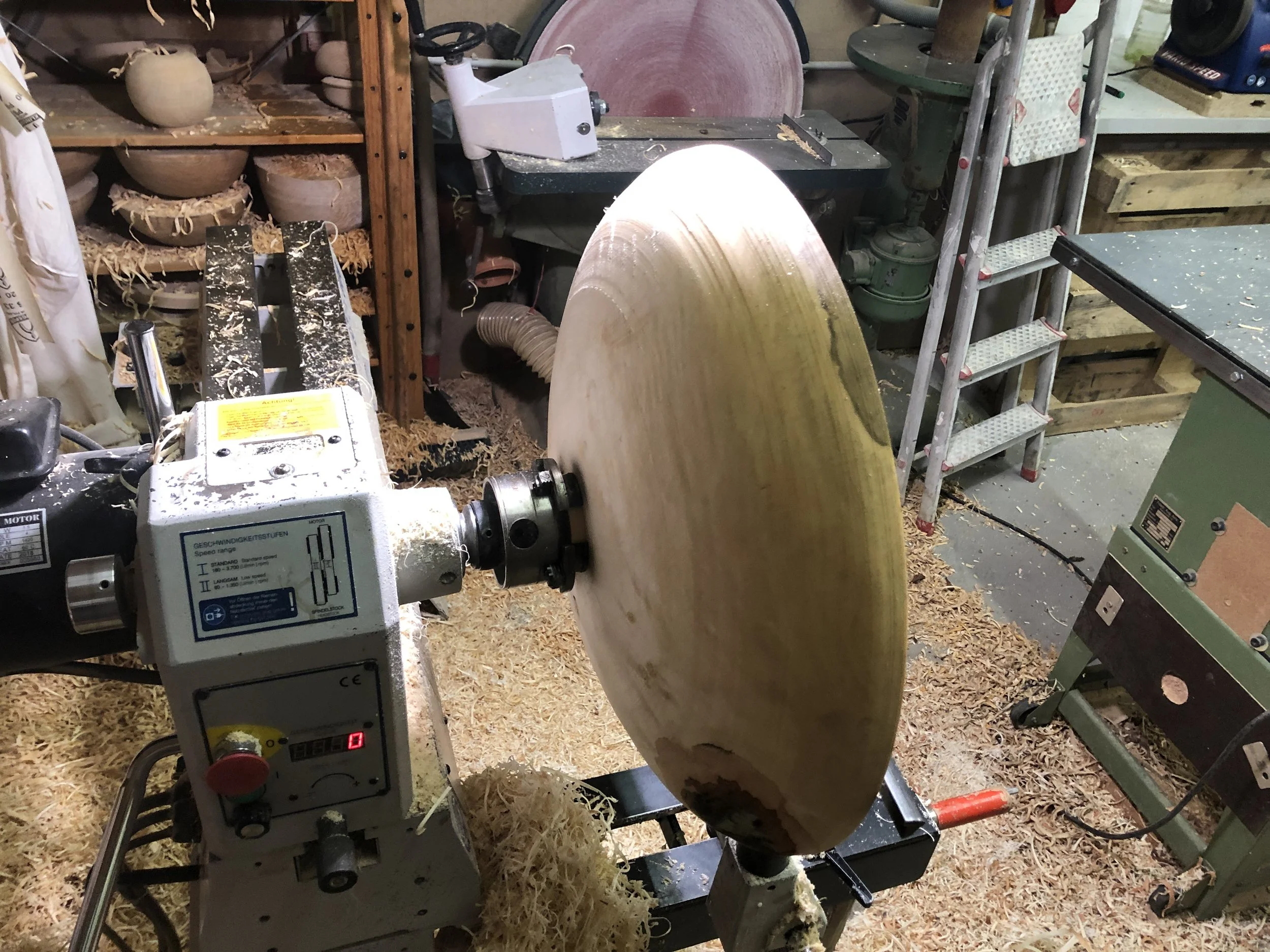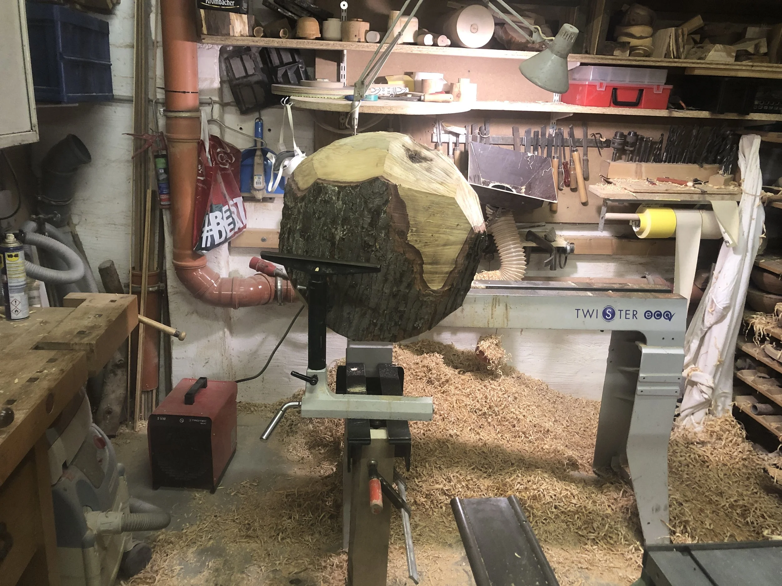 Hier seht ihr einen Teil der Herstellung einer Ahornschale. Dieser Baum wurde bei mir in der Nachbarschaft gefällt. Ein Bekannter erzählte mir davon, und da bin ich natürlich hin. Die freundlichen Baumfäller haben mir den Stammteil sogar noch geteilt und dann mit dem Minibagger ins Auto verladen.
