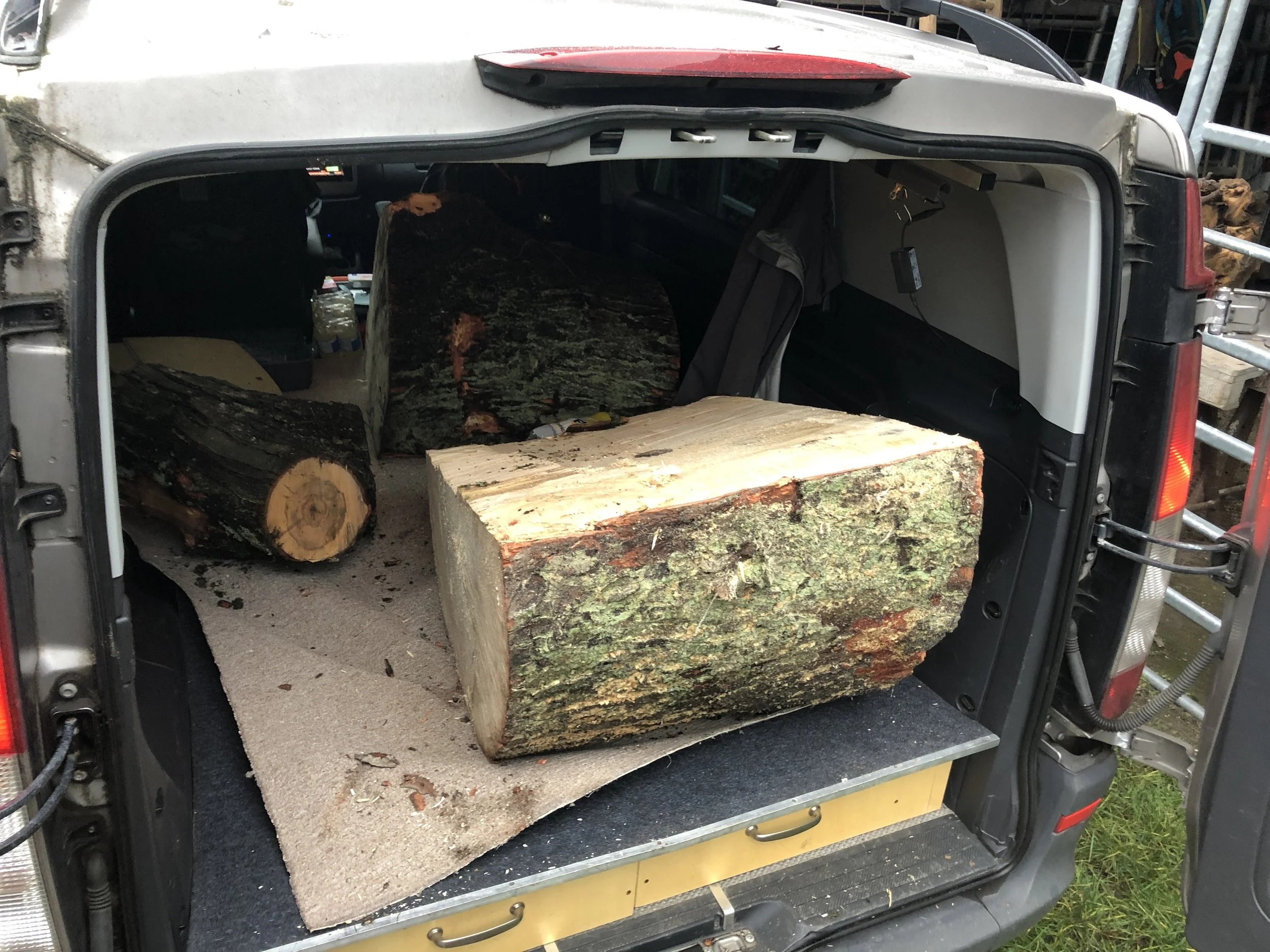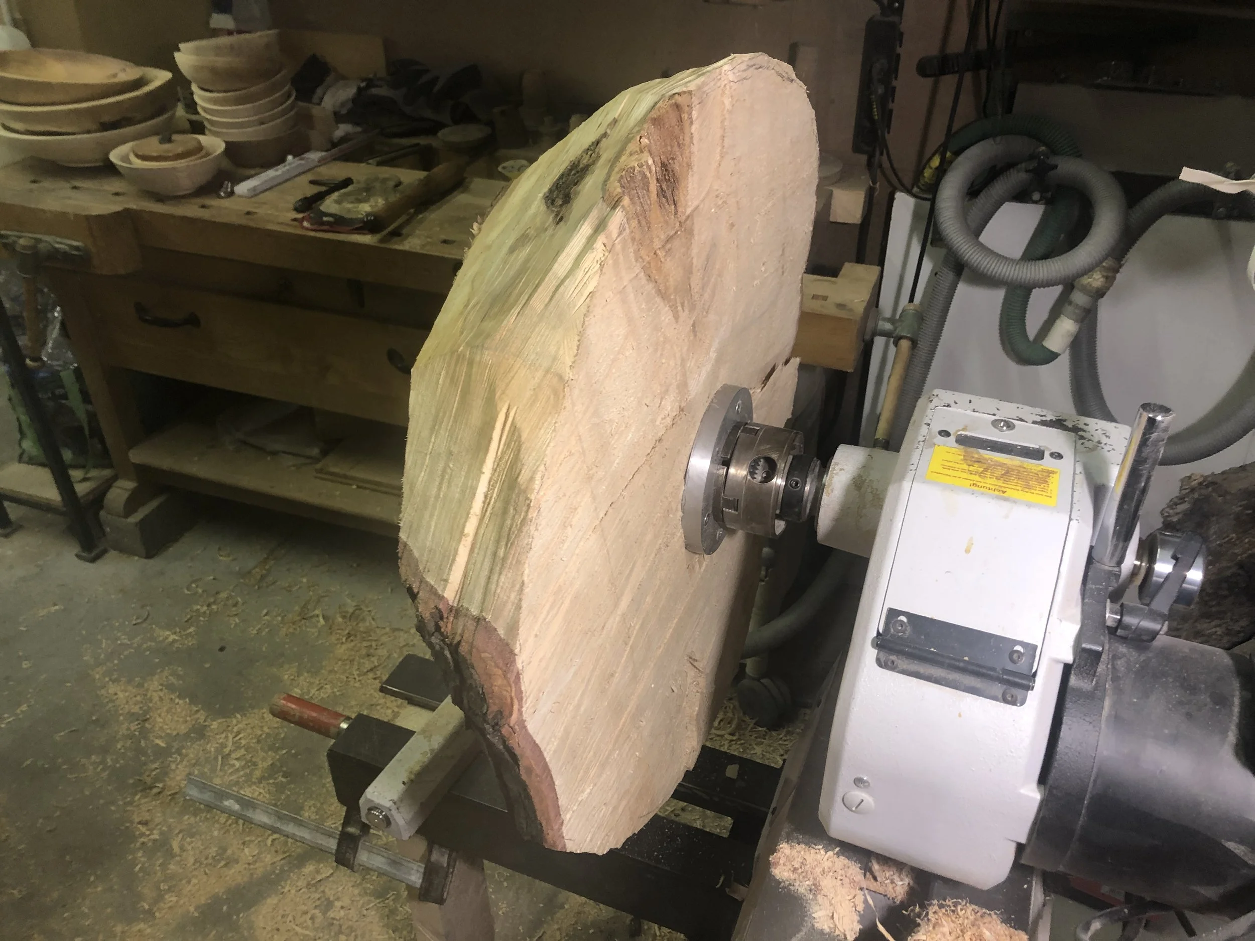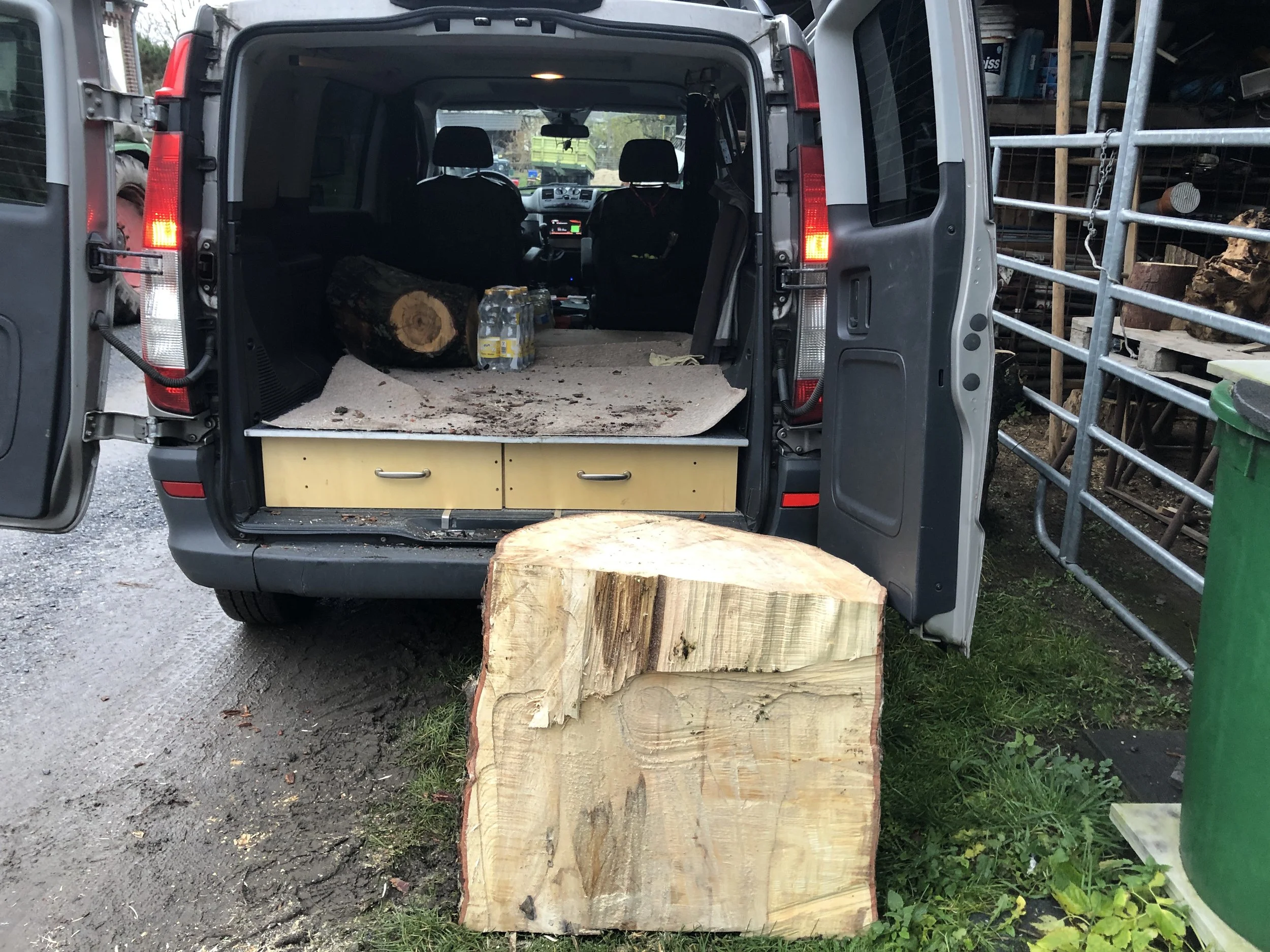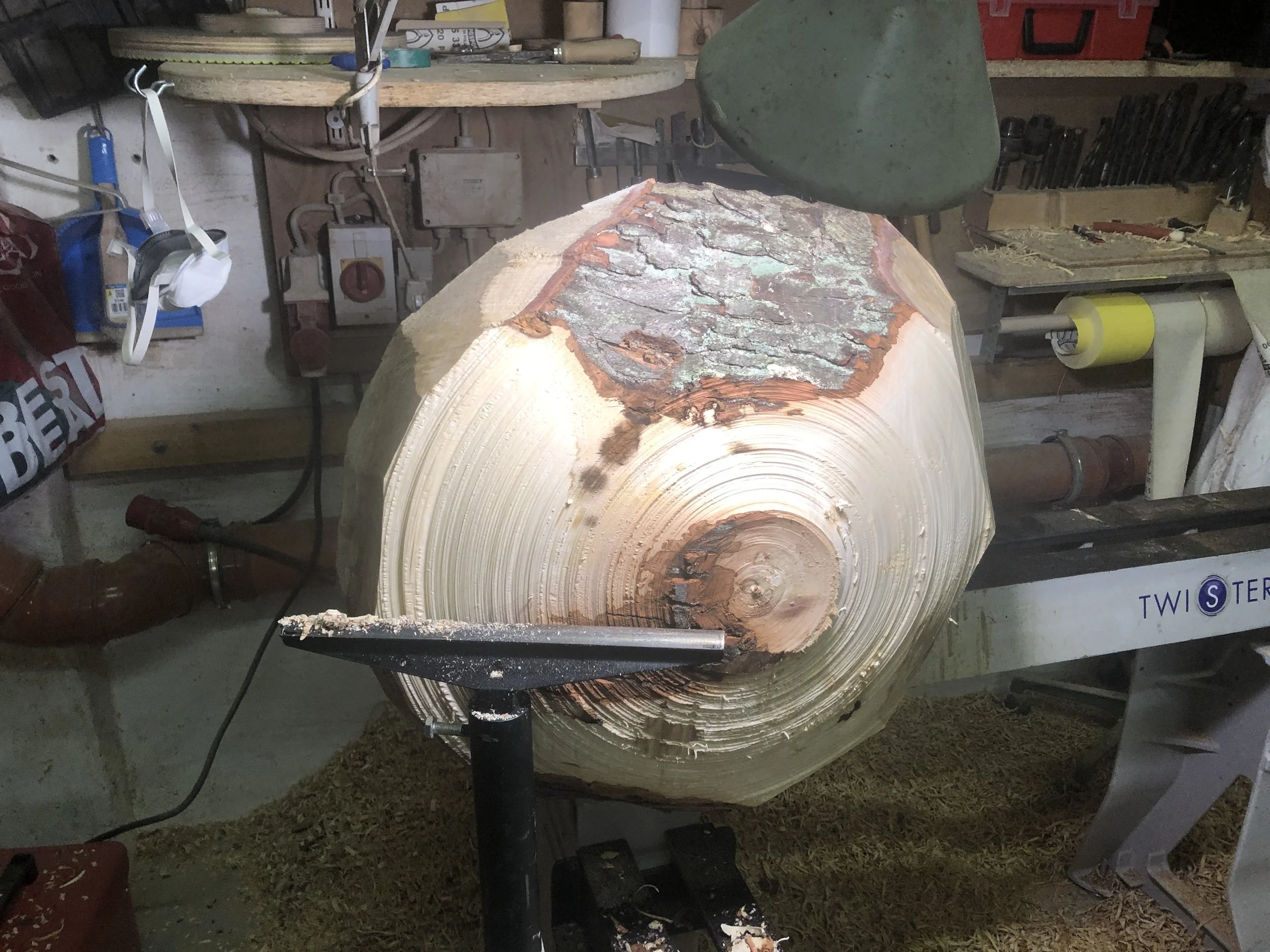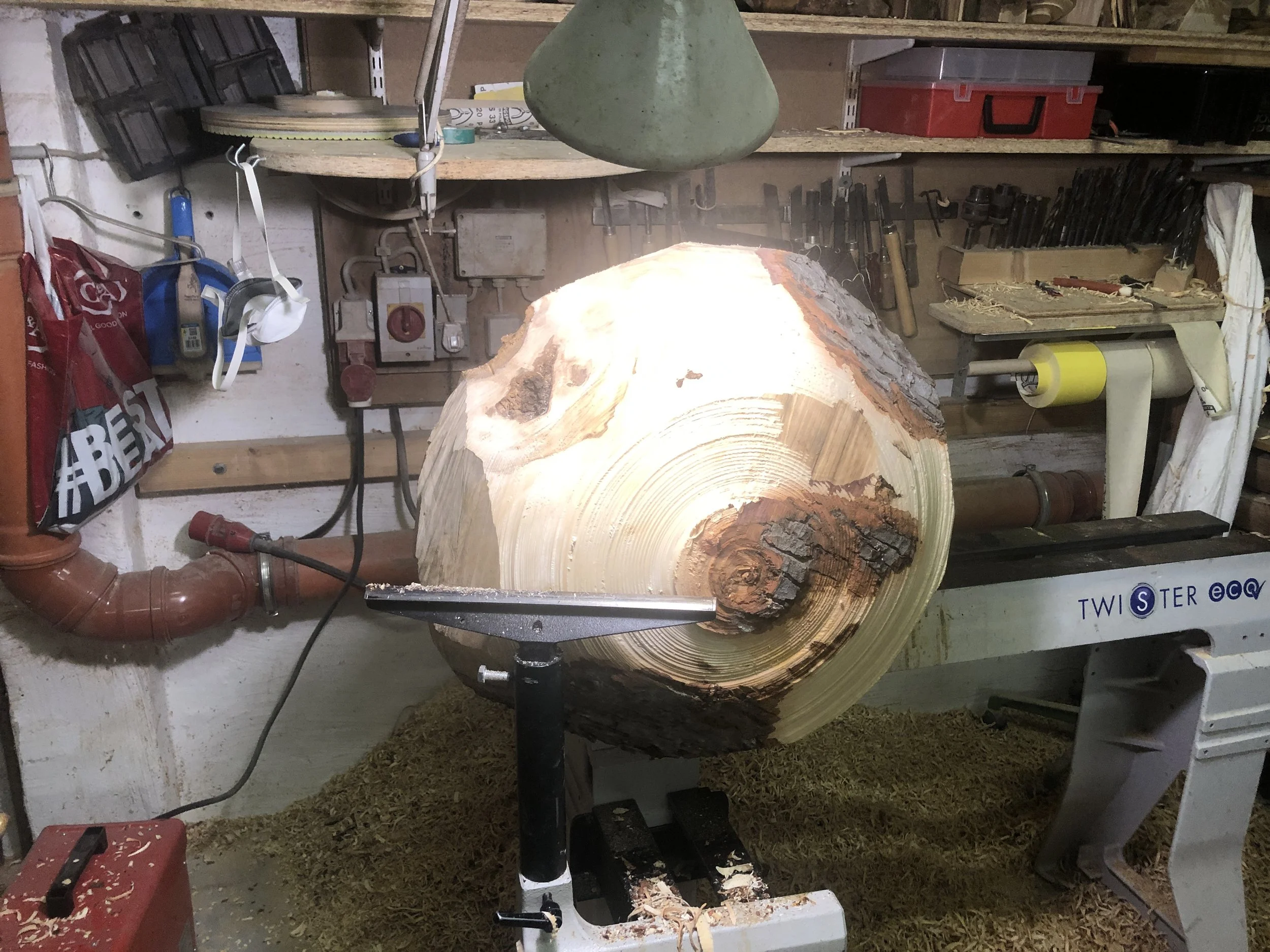 Hier seht ihr einen Teil der Herstellung einer Ahornschale. Dieser Baum wurde bei mir in der Nachbarschaft gefällt. Ein Bekannter erzählte mir davon, und da bin ich natürlich hin. Die freundlichen Baumfäller haben mir den Stammteil sogar noch geteilt und dann mit dem Minibagger ins Auto verladen.