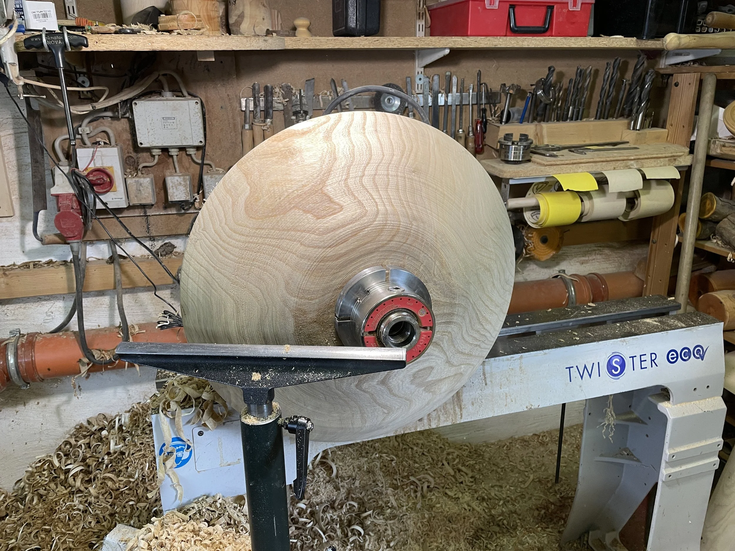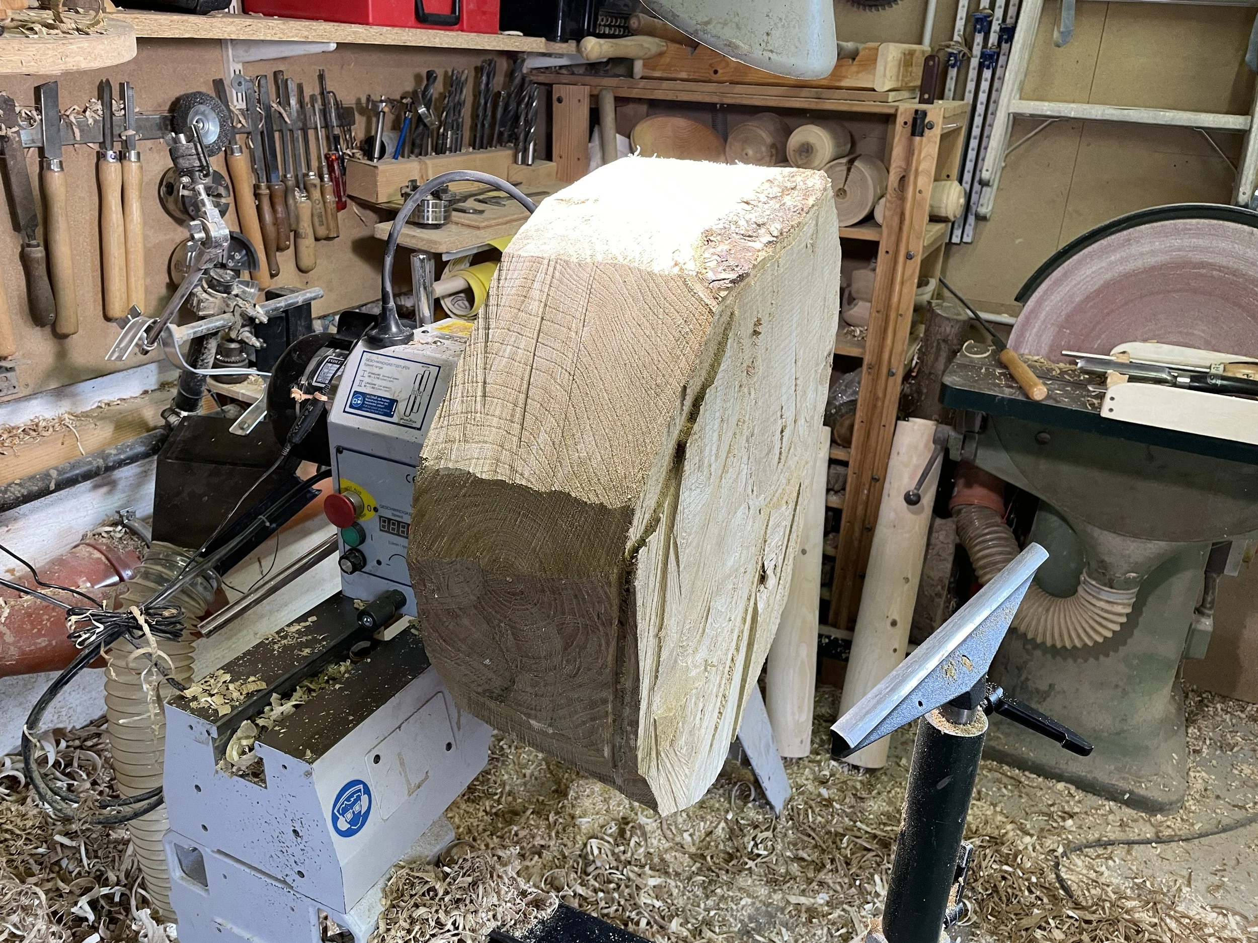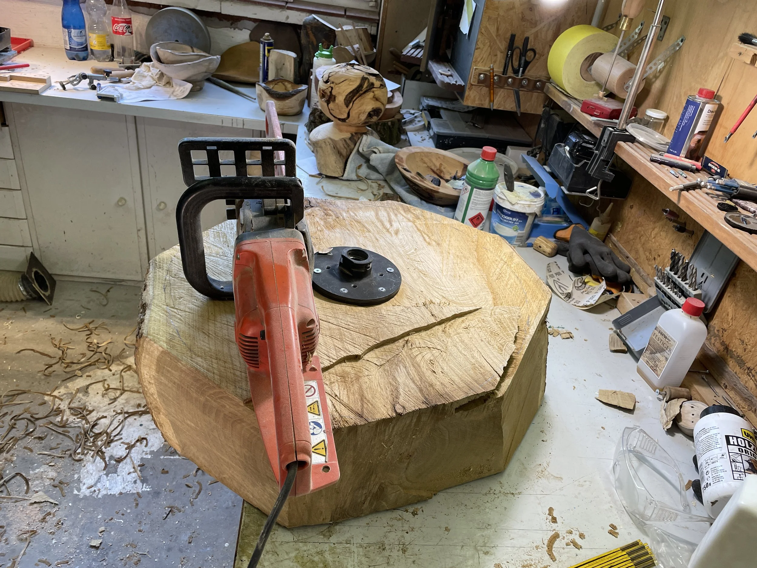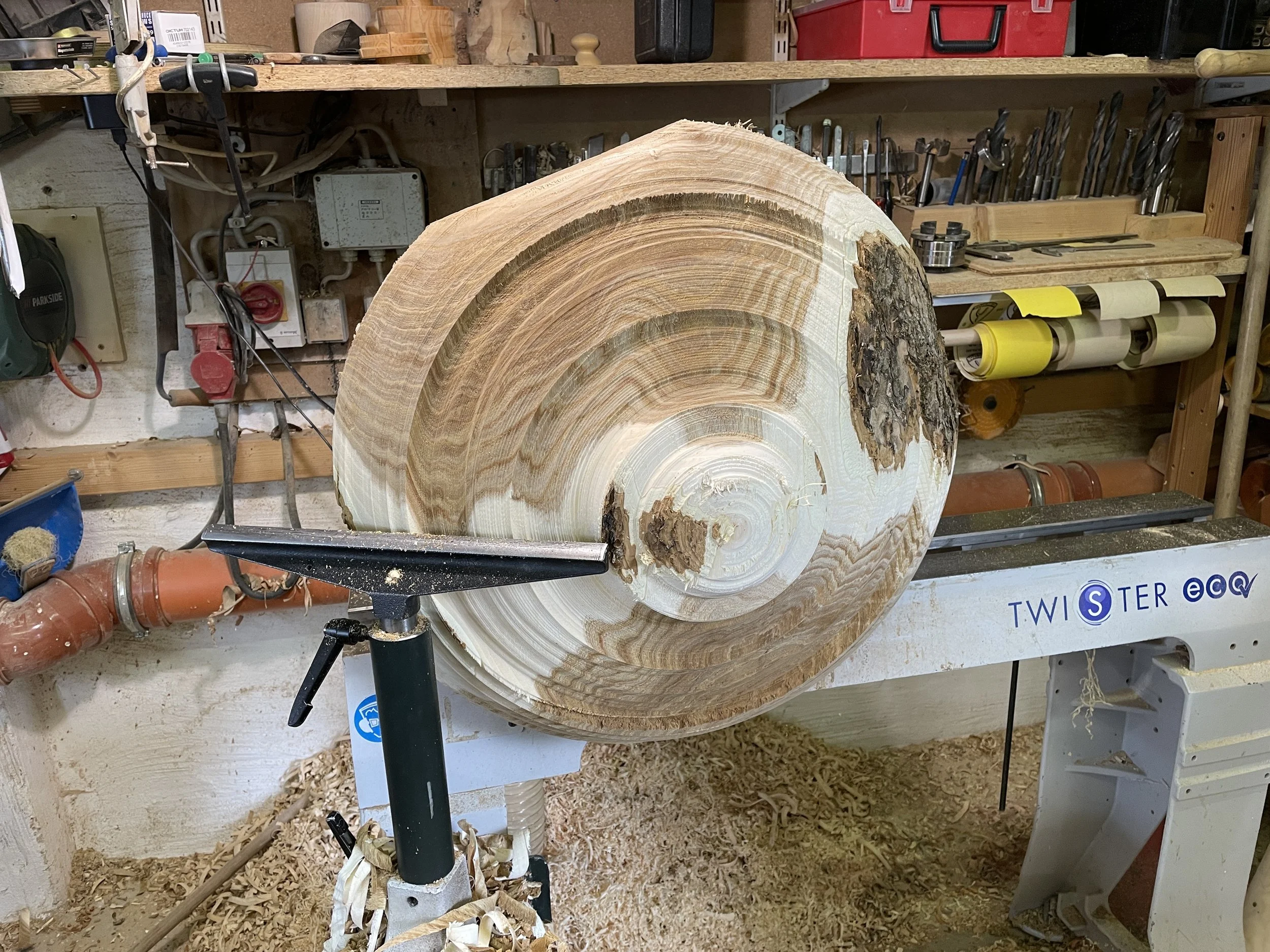 Erst wird er vom Pilz, einem Hallimasch, befallen und dann von mir noch mit verschiedenen Sägen und Drechselmessern malträtiert.