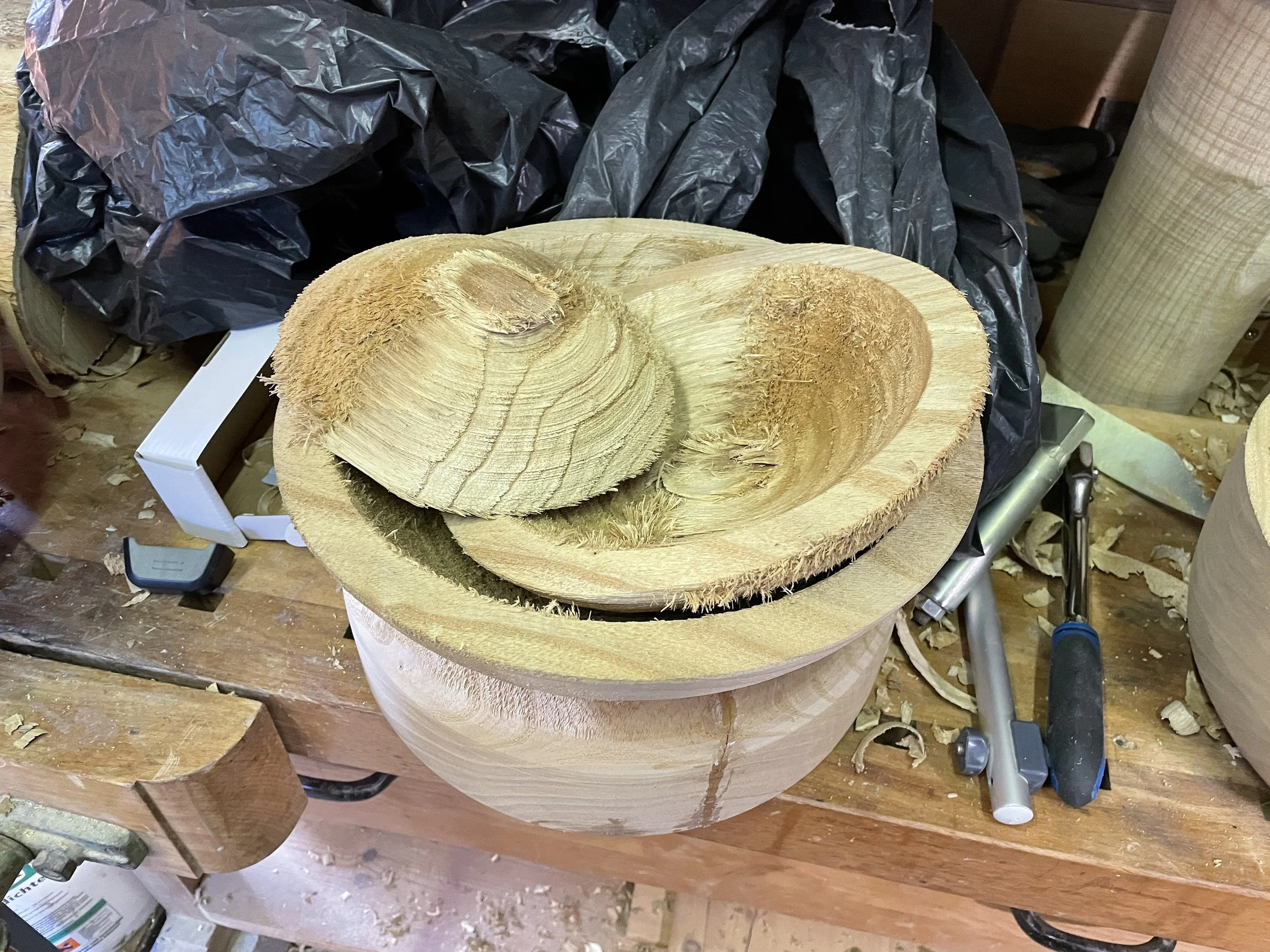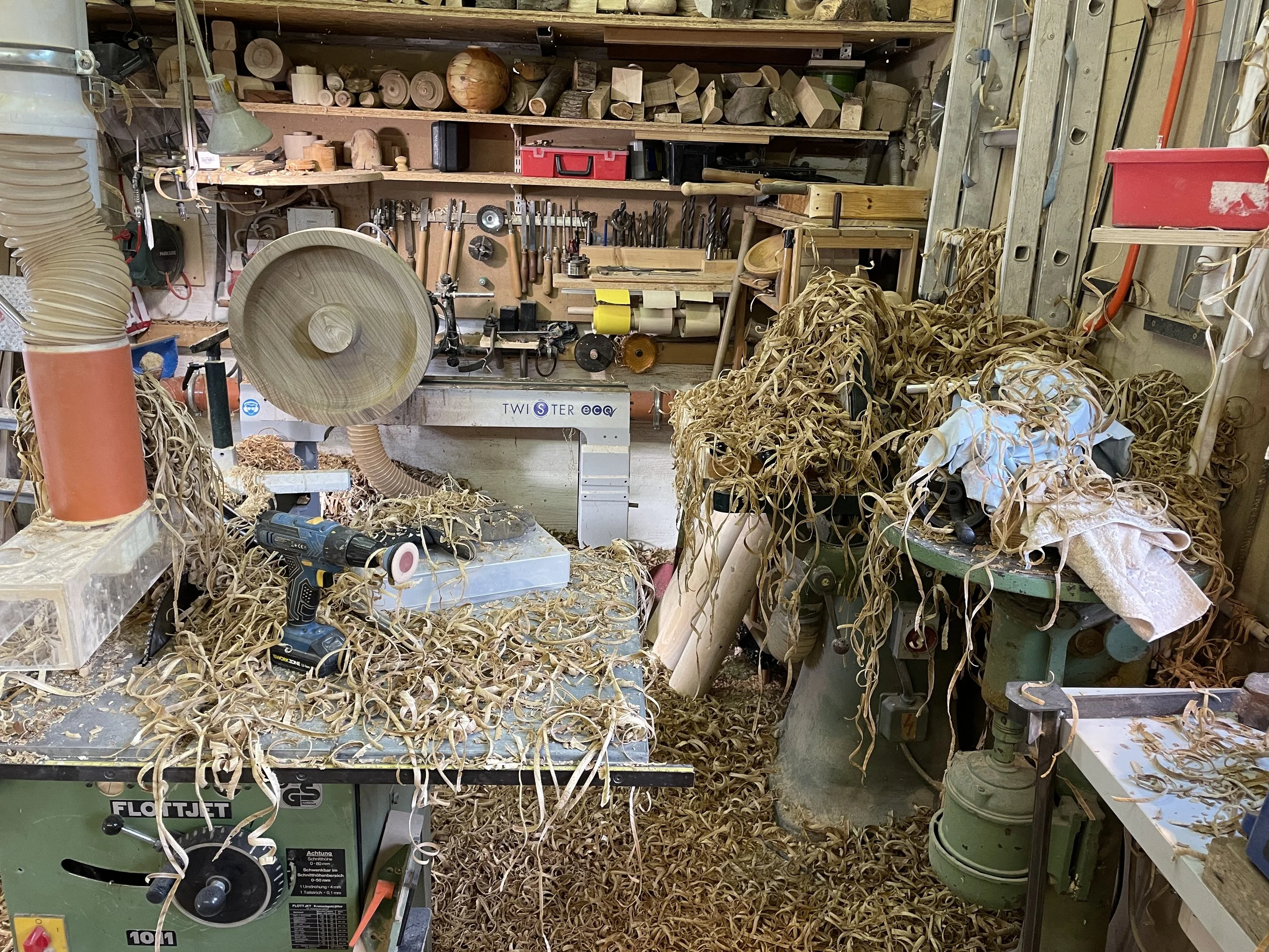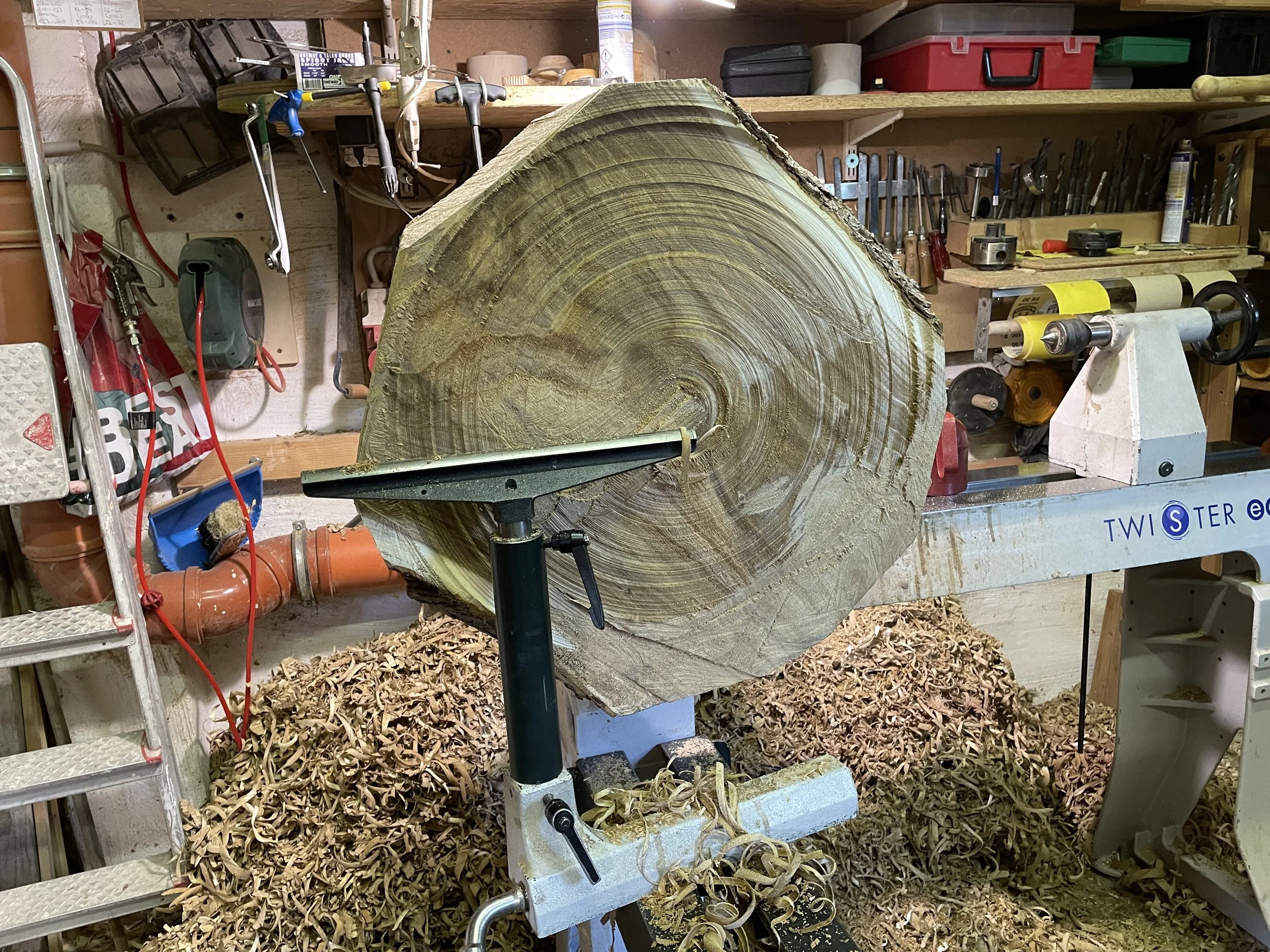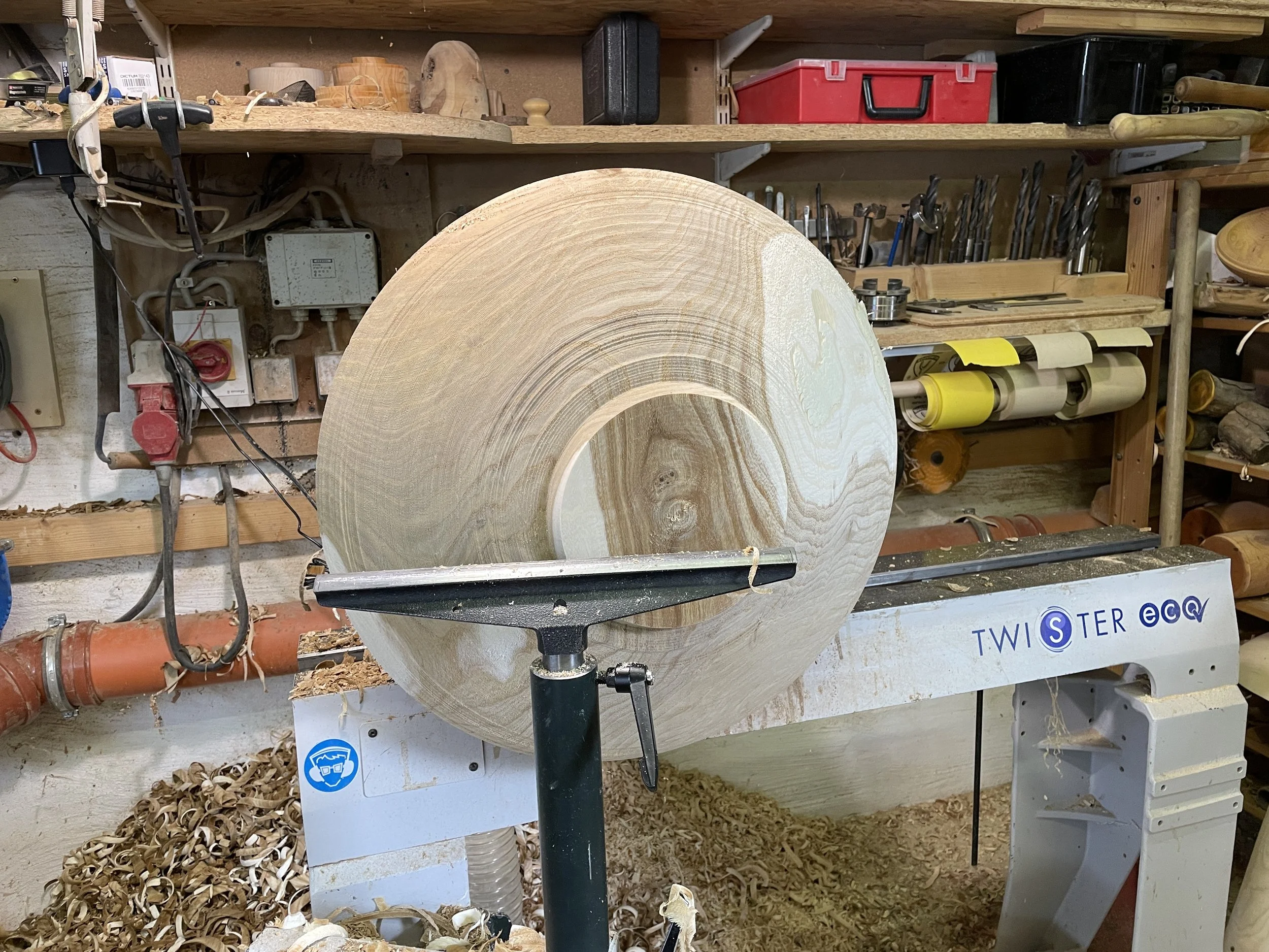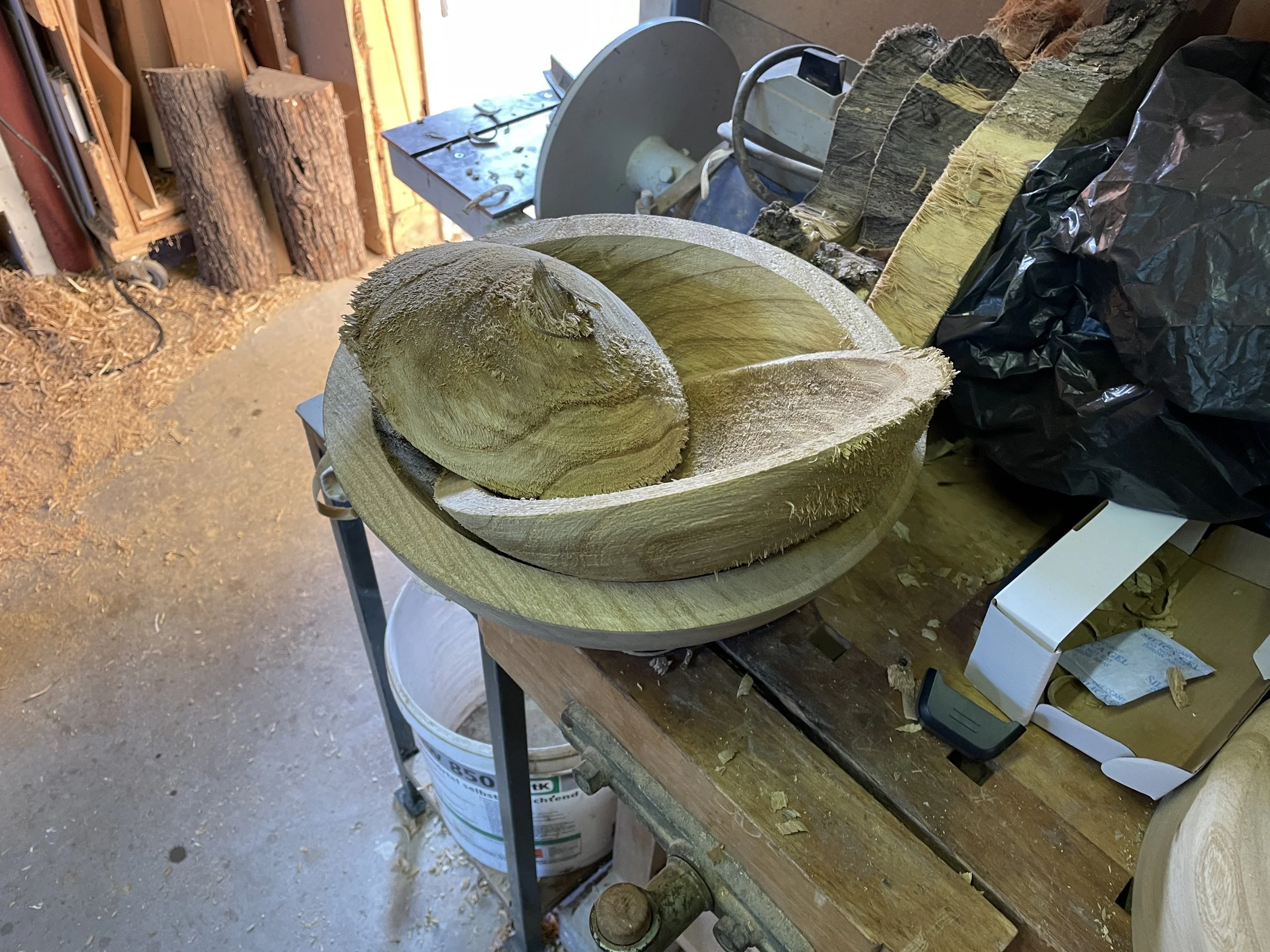 Erst wird er vom Pilz, einem Hallimasch, befallen und dann von mir noch mit verschiedenen Sägen und Drechselmessern malträtiert.