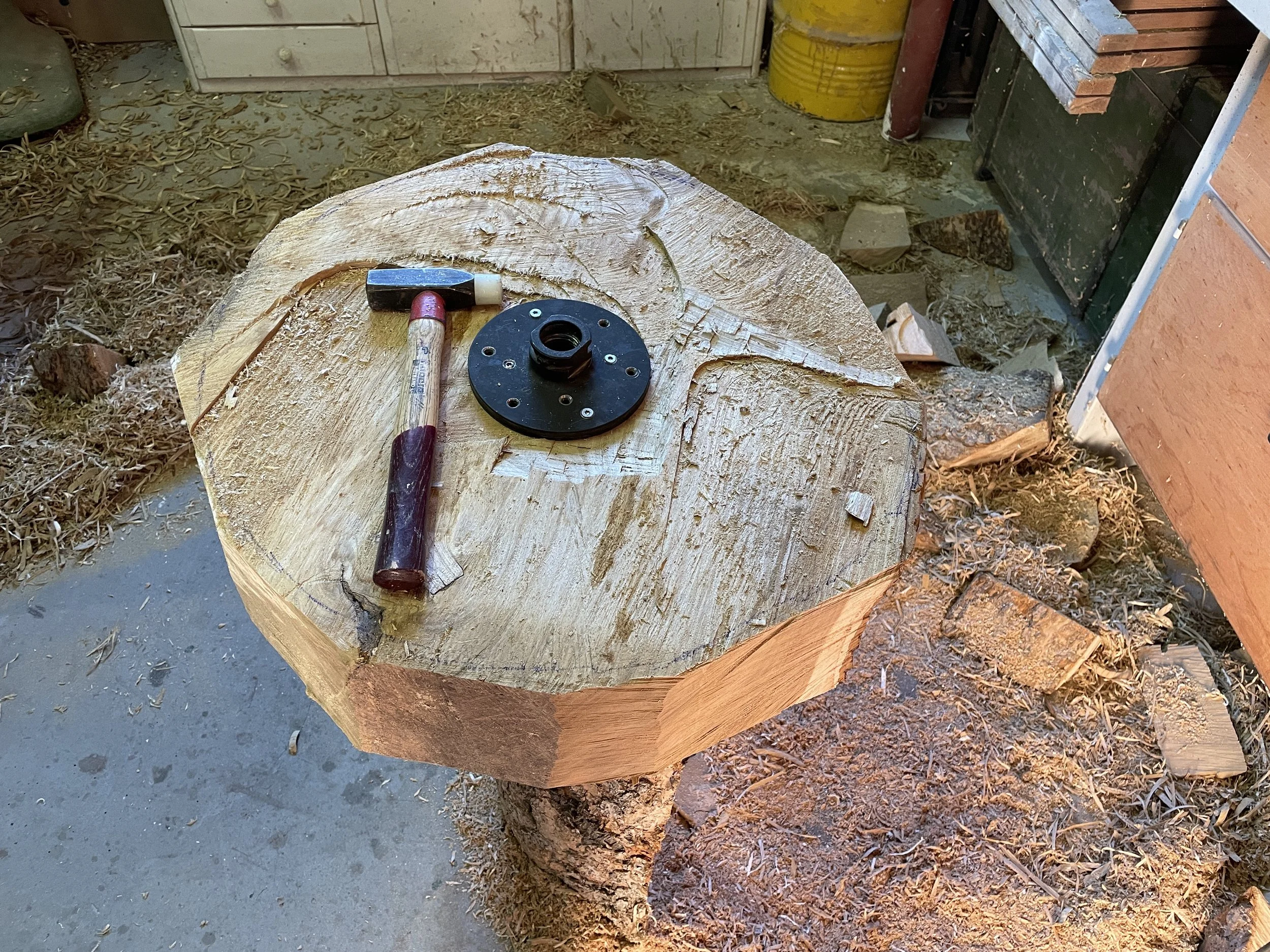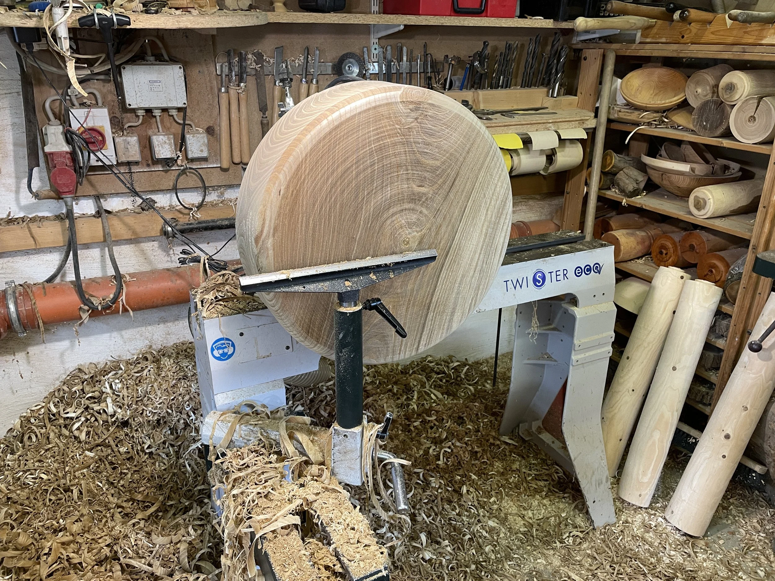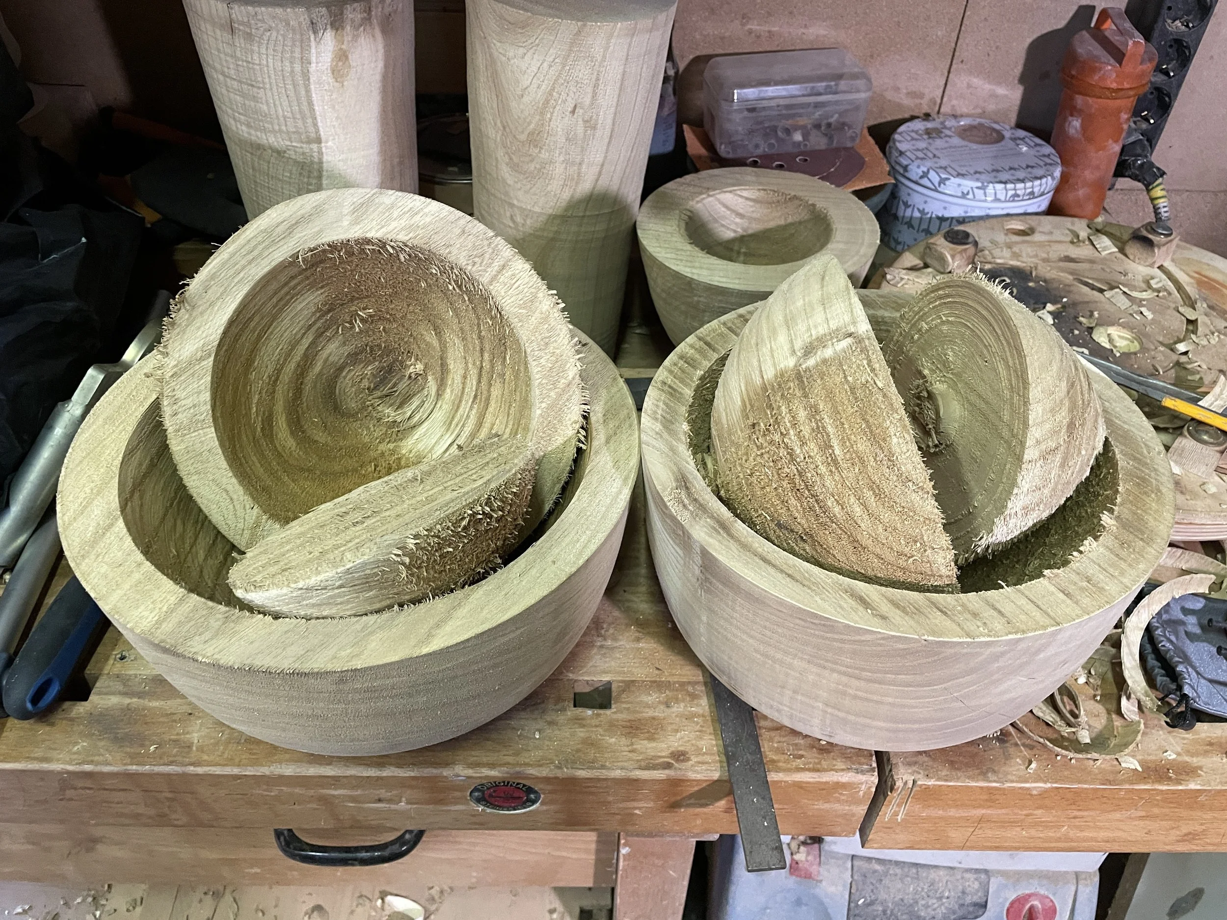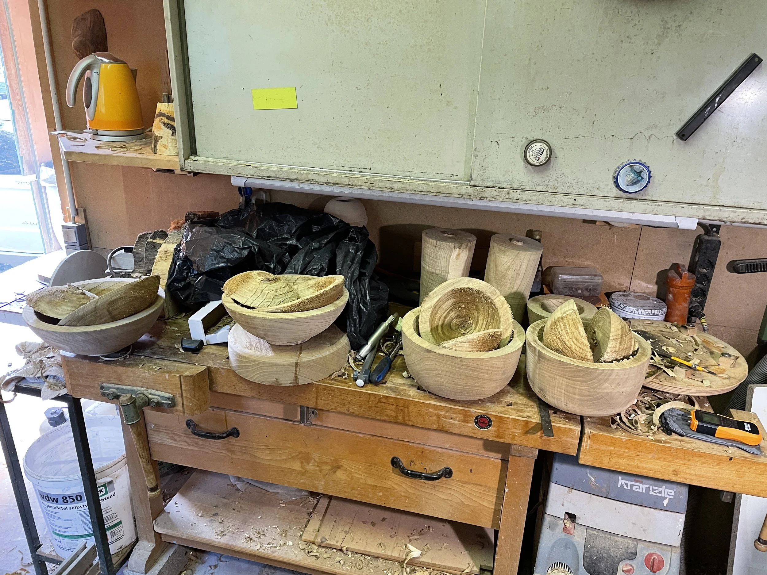 Erst wird er vom Pilz, einem Hallimasch, befallen und dann von mir noch mit verschiedenen Sägen und Drechselmessern malträtiert.