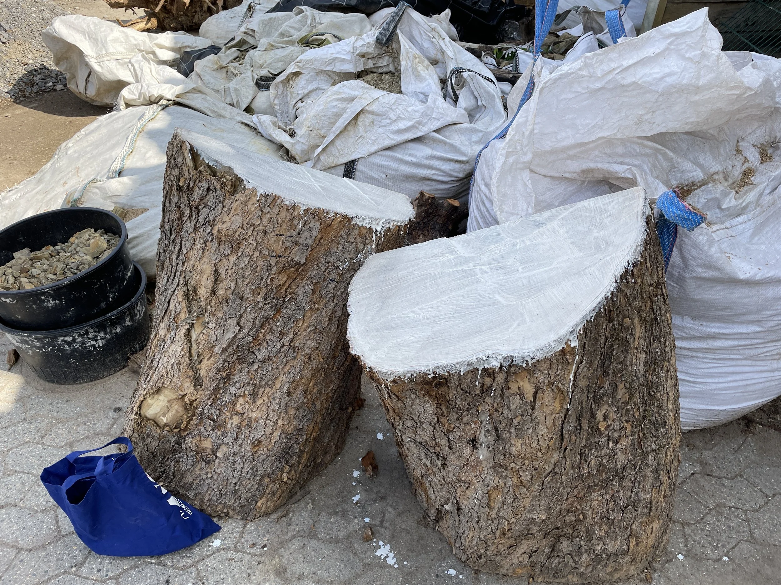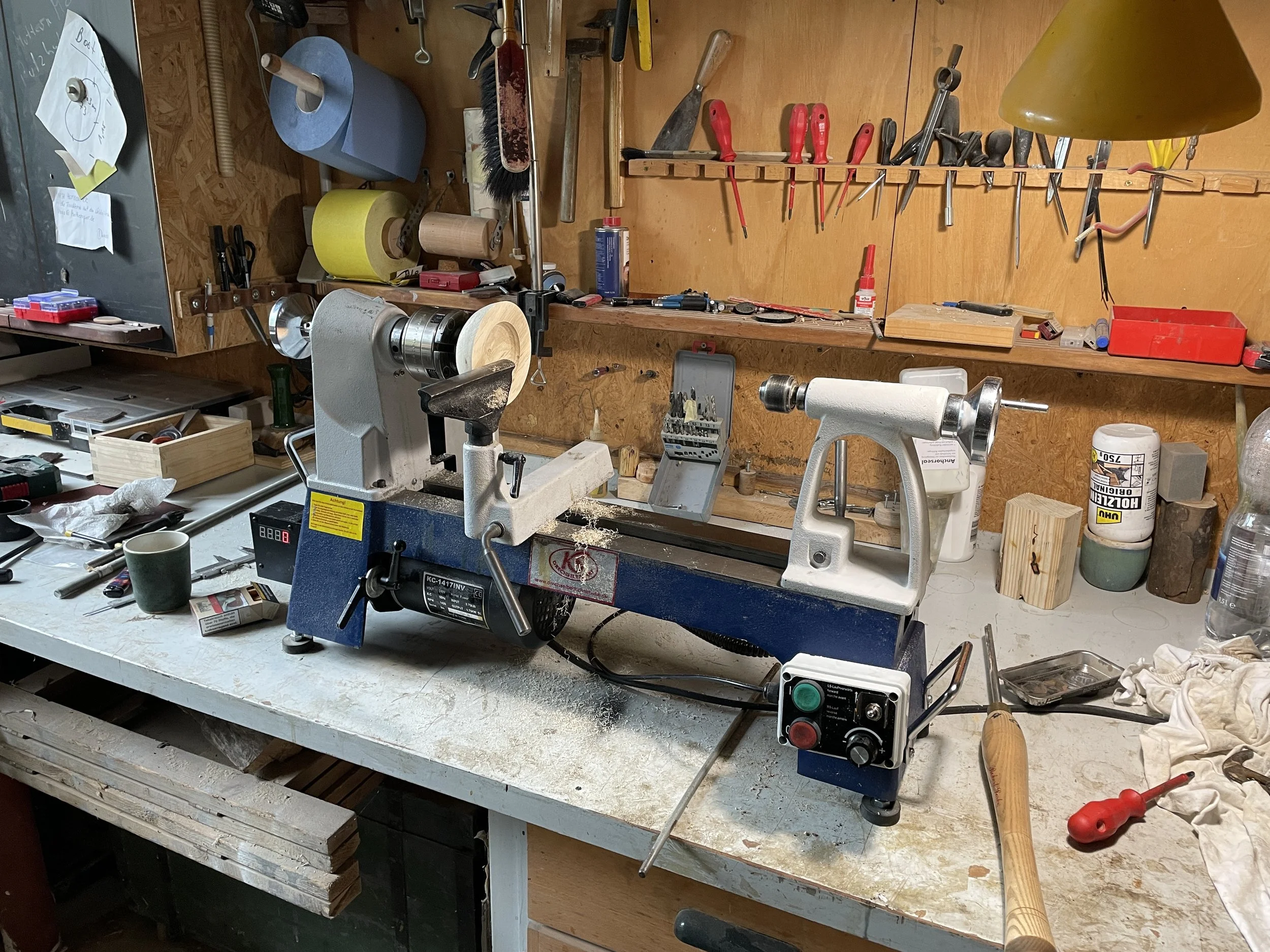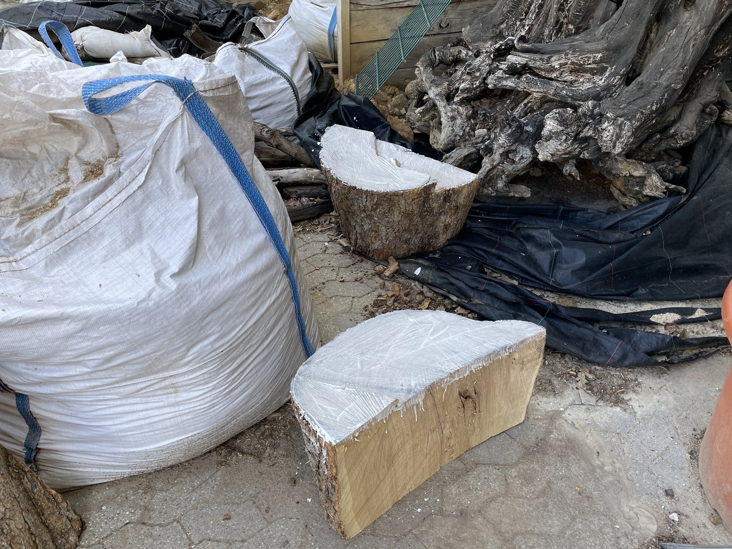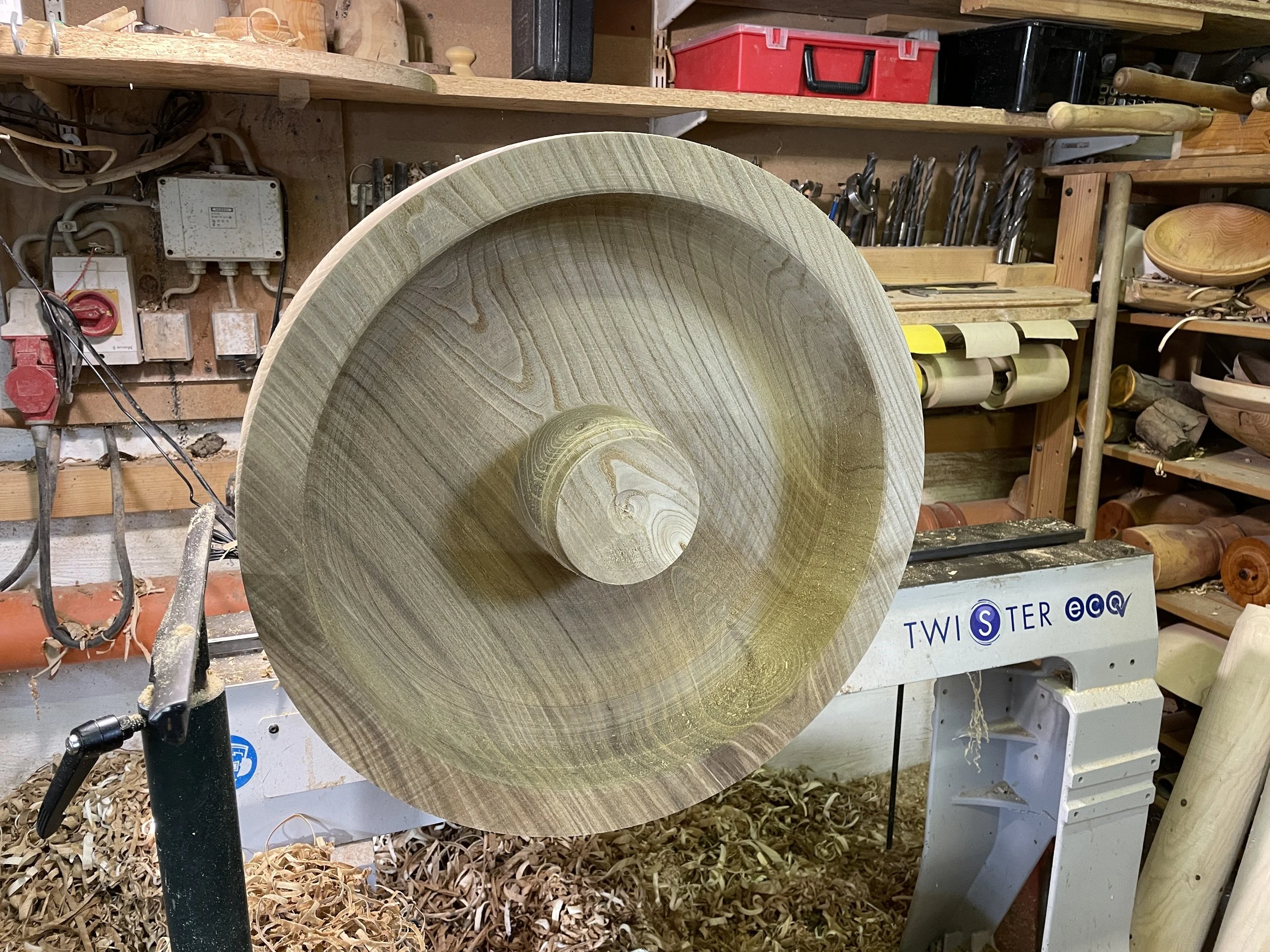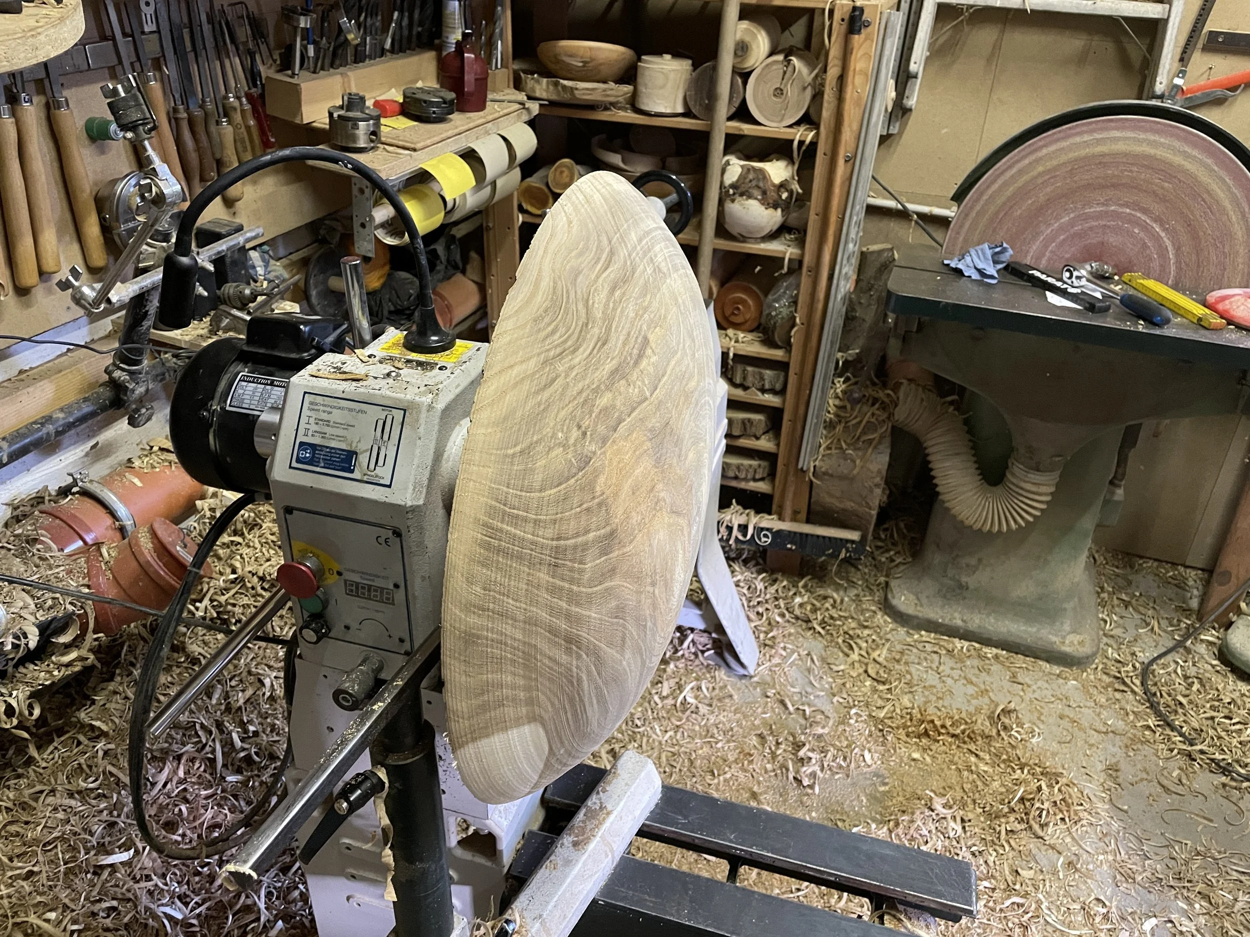 Erst wird er vom Pilz, einem Hallimasch, befallen und dann von mir noch mit verschiedenen Sägen und Drechselmessern malträtiert.